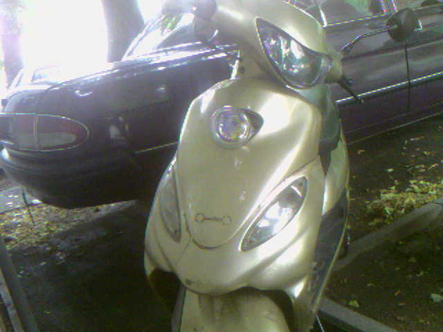 Итак, чтобы светило дешево и сердито я пошел на авторынок и купил "противотуманную" фару. В кавычках, потому что нужна была именно не ПТФ, а то, что продавцы так называют, но при этом, чтобы оно светит полоской с большим пятном посредине. Такой себе комбинированный дальний и ближний свет одновременно. Когда я искал себе такую фару, я рассчитывал втулить ее вместо штатной. Только вышло, что проверяя разные фары заметил, что та, которая по размерам подходит на штатное место вместо отражателя, светит ощутимо хуже, чем немного бОльшая. Взял бОльшую, присобачил снаружи на пластик. Чтобы фара не бросалась в глаза на золотистом скутере, взял ту, что имеет желтоватый рассеиватель. Еще нюанс: "противотуманка" как правило идет со стандартным патроном Н3 (реже Н1). Поставив такую фару, можно будет в последстие легко перейти на ксенон, тк моноксенон Н1 и Н3 - как показал поиск в и-нете, не только самые распространенные, но и самые дешевые.
